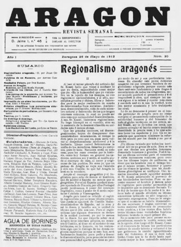 Aragonese regionalism must speed up and organise itself to achieve autonomy for Aragon, through need and through right, because of its personality. The Commonwealth of Aragon has to be like the great Council of the Kingdom (the Aragon government in the Middle Ages), against a system of centralised Provincial Councils that limit themselves to obeying Madrid and spend their budget according to the Government’s directives, which transmits its adverse effects. Complete administration of the country is sought, overcoming the inexcusable links with the Government. One attempts to attend to the proper needs of Aragon, economic, public works, territorial organisation (the regions), that will overcome limited provincial municipalism, that will update and revitalise Aragonese regional rights, that will make Zaragoza its capital and maintain cordial but minimum relations with the Spanish government. It is in favour of friendly relations with other people, especially Cataluña and Levante, but without being anybody’s colony or appendix. It restores Aragon’s proper personality and its wish to defend its interests against third parties.